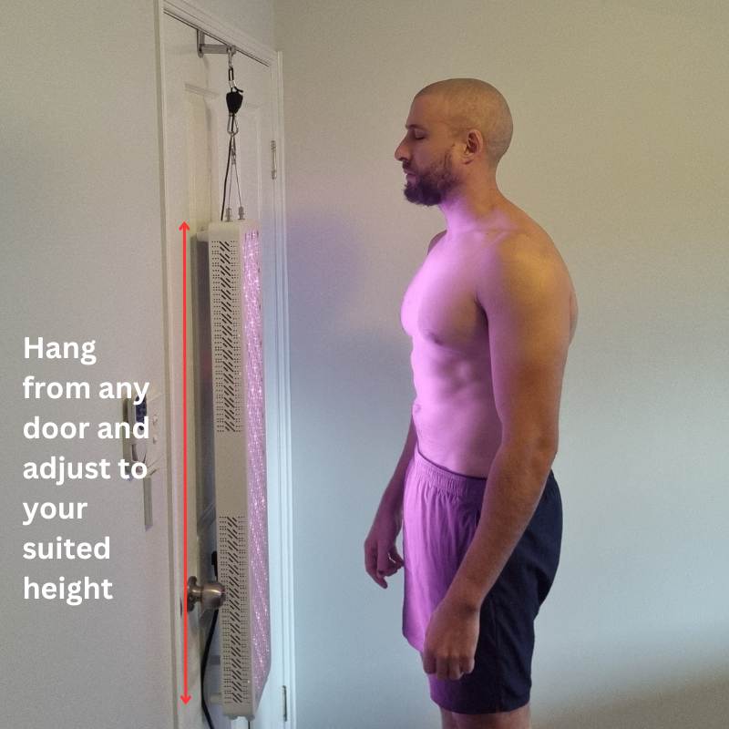 A general recommendation is to stay at least 3 inches (about 8cm) from the panel. For deeper muscle or joint treatment, sitting closer (around 3–6 inches) helps increase penetration. For more sensitive areas or sensitive skin, you may prefer a greater distance to reduce intensity.